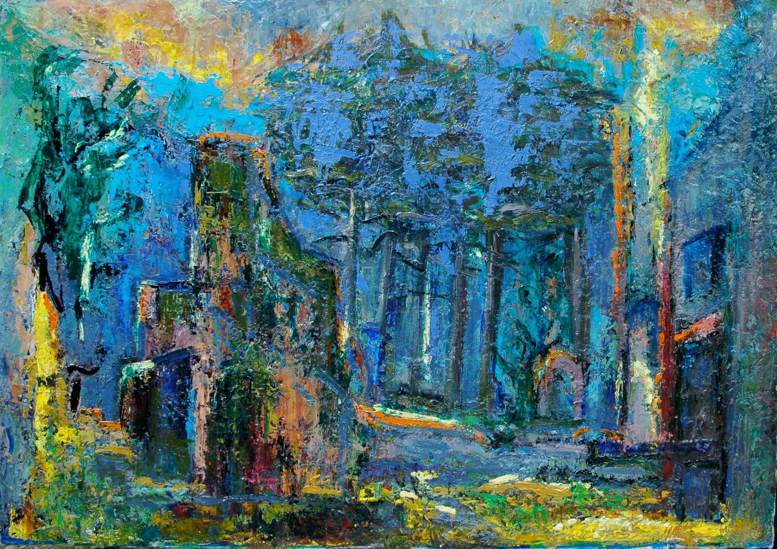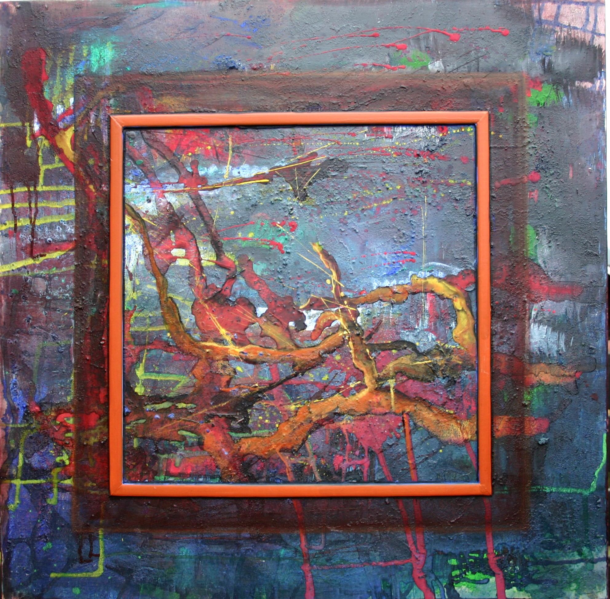 „Verona 2“80x80, Öl + Holz auf Leinwand