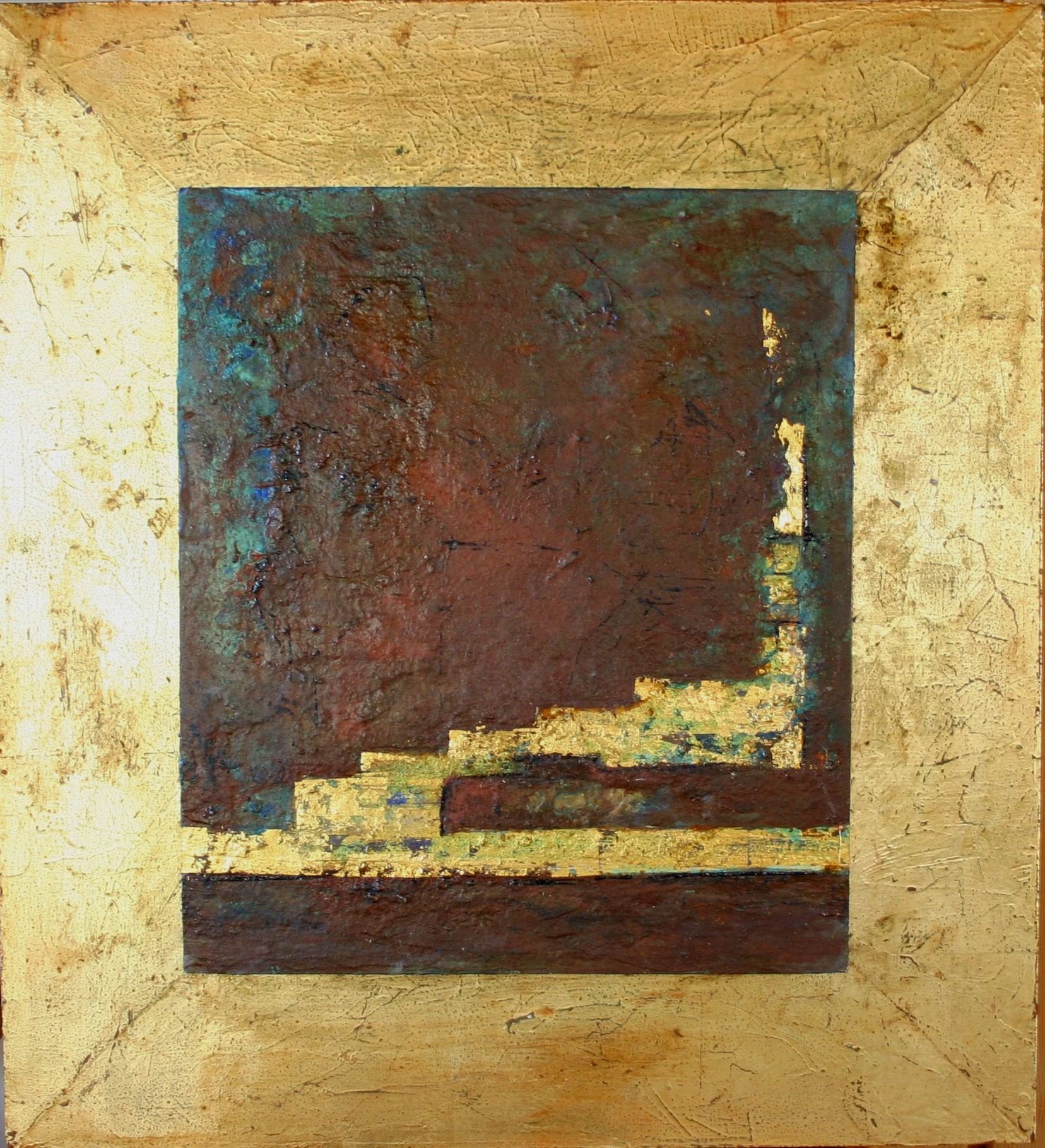 „Goldtreppe“55x60, MT mit Rosenoblegold auf Holz