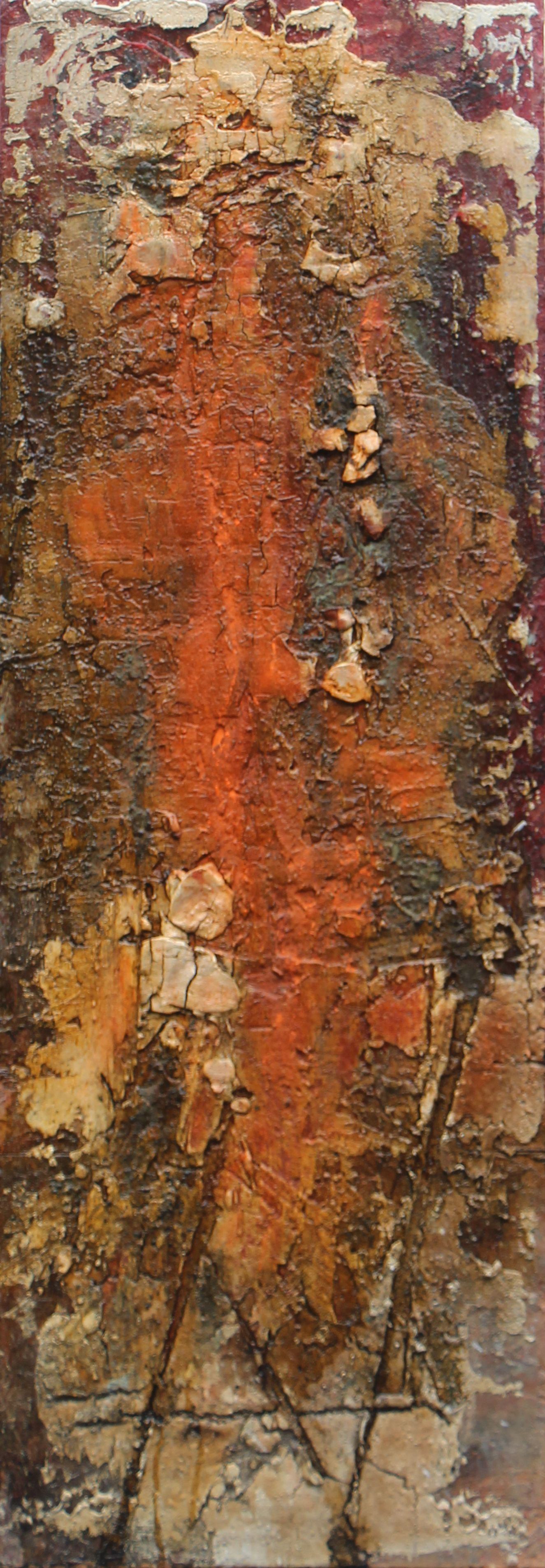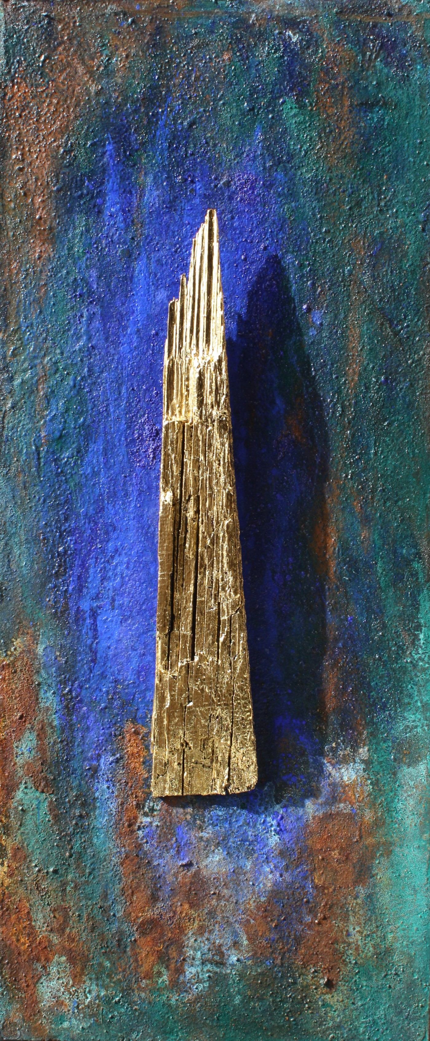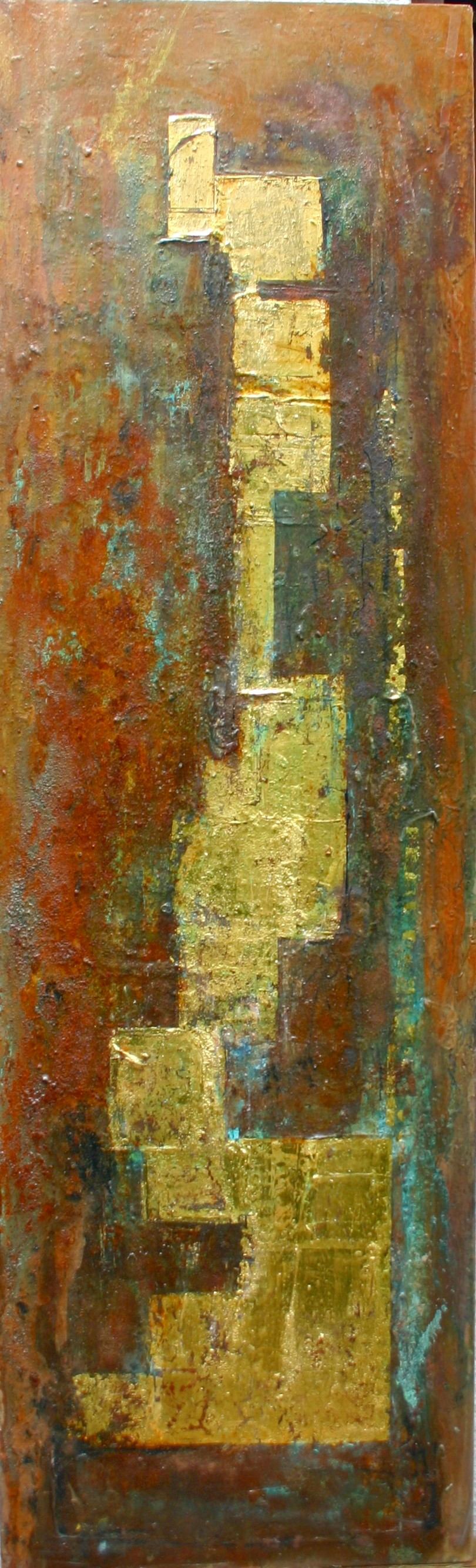 „Tableau 1“50x165, MT mit Rosenoblegold auf Holz