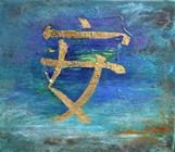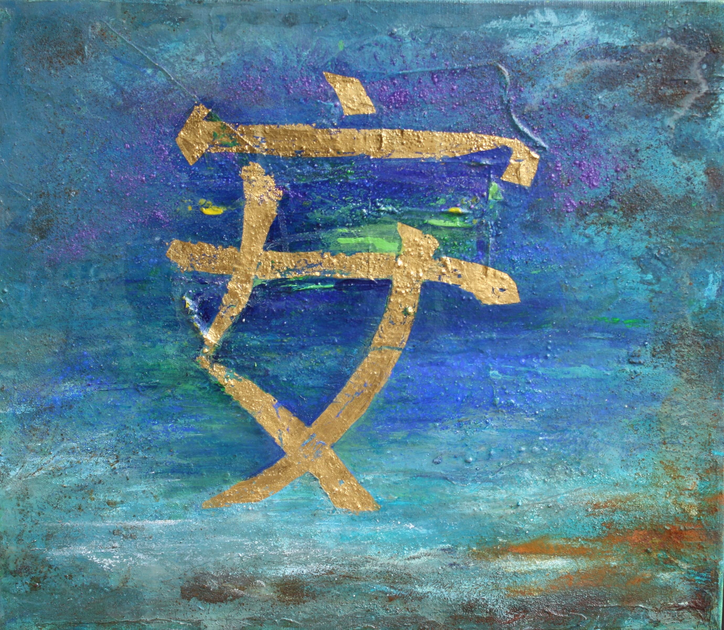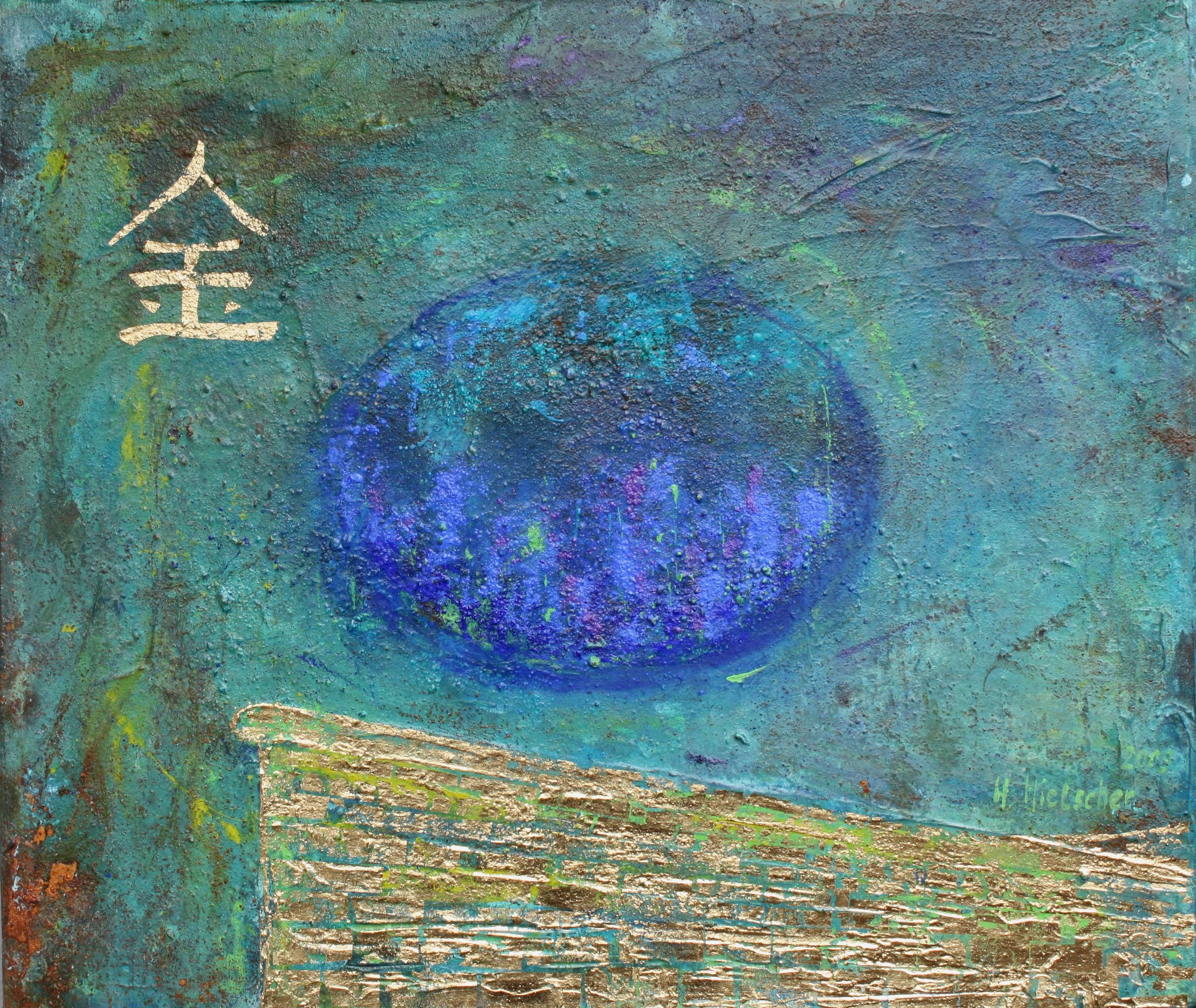 „Friede“60x70, MT mit 23,75 Karat Rosenoble Gold auf Leinwand
