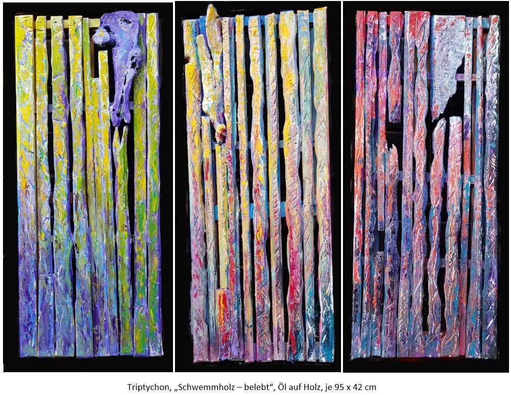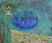 „Silbermond“80x80, Öl + Holz auf Leinwand
